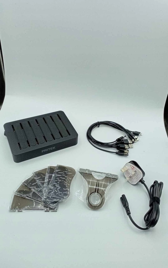 - Schludny i zorganizowany – koniec z zagraconymi kablami, bez wiązek ładowarek, wszystko w jednym miejscu, czyste i zorganizowane. Jedna stacja dokująca do ładowania może utrzymać wszystkie urządzenia w jednym miejscu, skutecznie utrzymując porządek na biurku. Stacja dokująca ładująca może być również używana jako uchwyt na telefon lub tablet. Przegrody można usunąć, jeśli potrzebujesz.