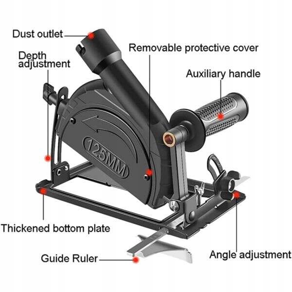 Teraz możesz używać szlifierki pod kątem od 0 do 45 stopni z 3-krotnie większą precyzją cięcia. Natychmiast odkurza pozostałości po cięciu