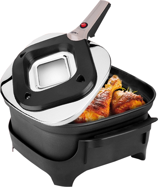 - Przezroczysta pokrywa umożliwia kontrolę przygotowywanej żywności