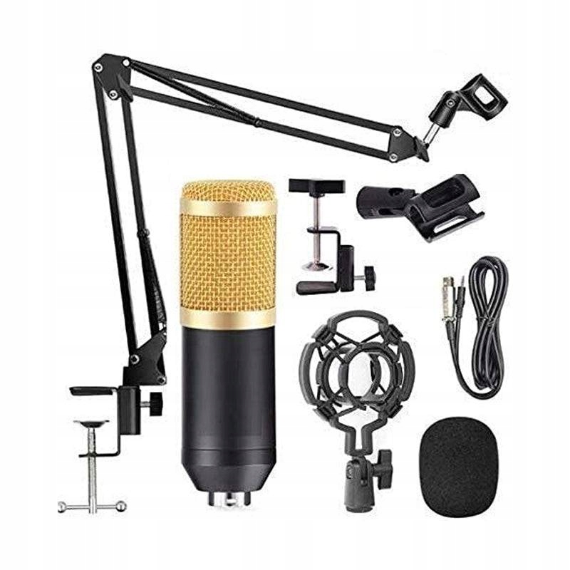 Profesjonalny sprzęt do nagrywania w studio: wyposażony w mikrofon , profesjonalny statyw do nagrywania, pop filtr, regulowany uchwyt do zawieszenia, piankową osłonę przed wiatrem, kabel zasilający, kartę dźwiękową.