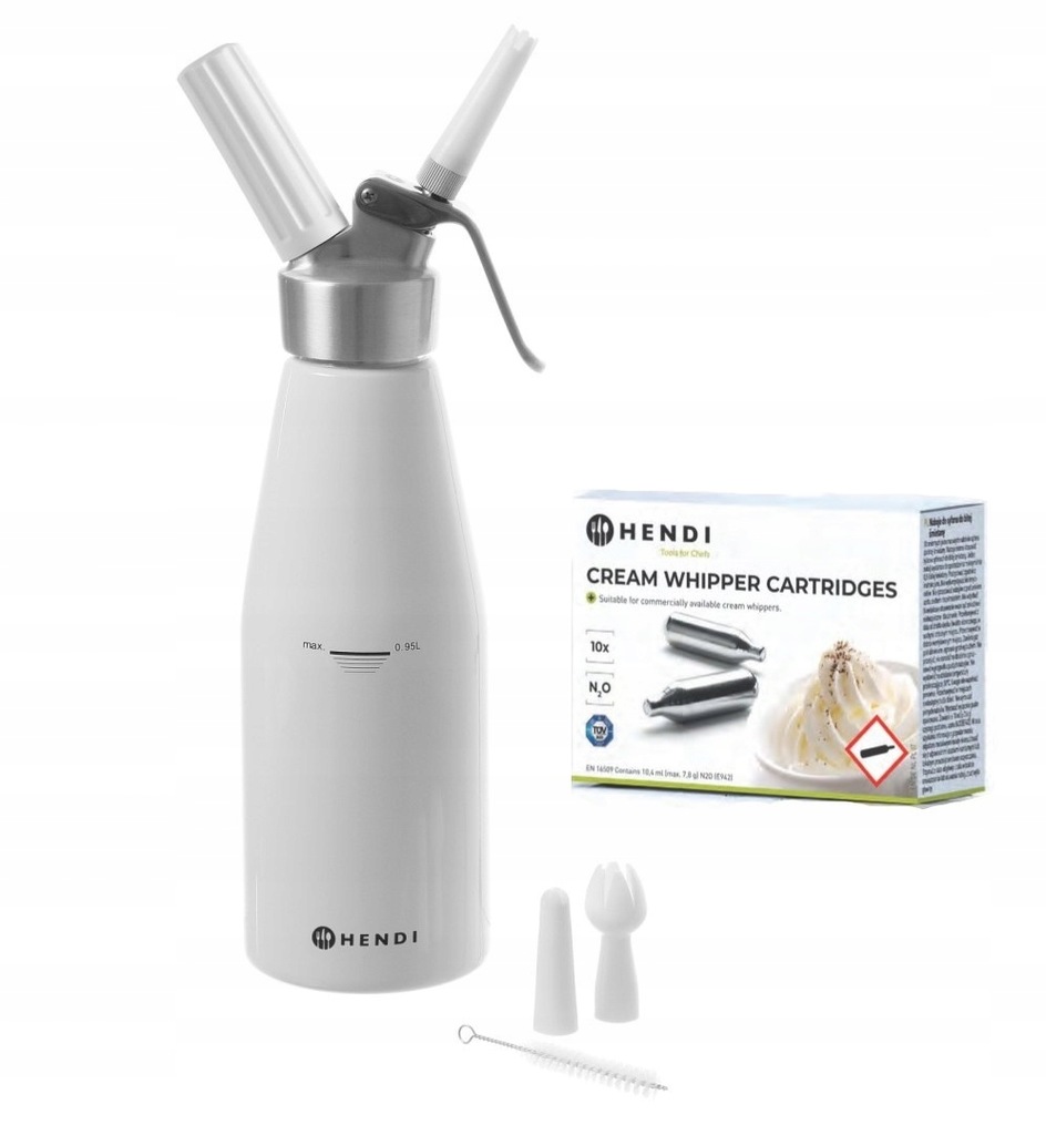 ✅ Profesjonalny Syfon Dekorator Do Bitej Śmietany 1L + 10 naboi N2O Hendi 588376