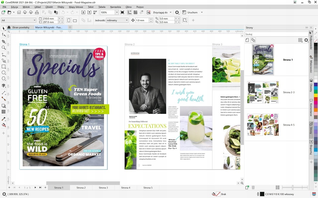 - Układ stron: w pakiecie znajdziesz wszystkie niezbędne narzędzia do tworzenia układu stron broszur, wielostronicowych dokumentów itp.