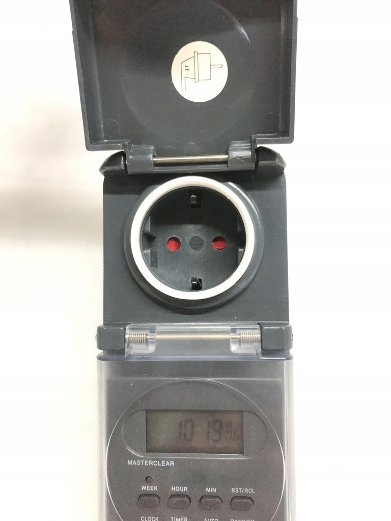 Cyfrowy timer z wyświetlaczem LCD, losowym przełączaniem na czas wakacji i zwiększoną ochroną przed dotykiem