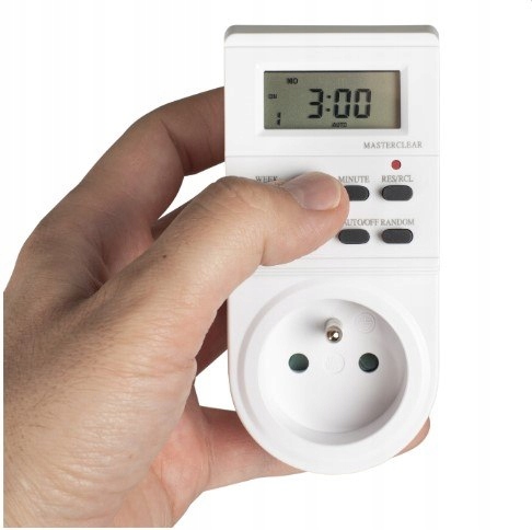 - Funkcje programatora: Posiada szereg przydatnych funkcji, takich jak MASTER CLEAR do kasowania wszystkich danych z pamięci, funkcja RANDOM do ustawiania lub anulowania włączania losowego, a także możliwość programowania 10 procesów włączania i wyłączania w przedziale co 1 minutę.