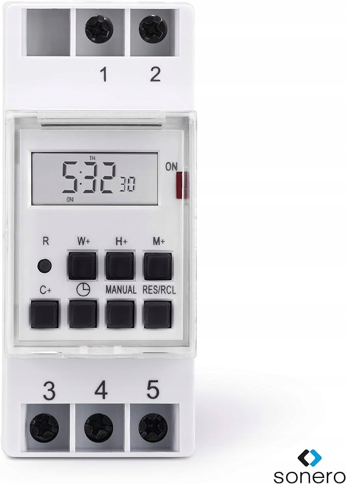 - Cyfrowy zegar sonero z wyświetlaczem LCD do montażu na szynie DIN / panelu rozdzielczym charakteryzuje się wysokim poziomem wygody, prostą obsługą i maksymalnym bezpieczeństwem dla Twojej rodziny