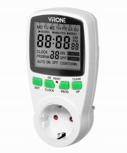 ELEKTRONICZNY PROGRAMATOR CZASOWY VIRONE DT-1(GS) z dużym wyświetlaczem LCD, umożliwia precyzyjne ustawianie harmonogramów włączania i wyłączania urządzeń elektrycznych. To praktyczne urządzenie sprawdzi się w sterowaniu sprzętami domowymi, jak oświetlenie, klimatyzatory, ogrzewacze wody, a nawet kuchenki elektryczne.