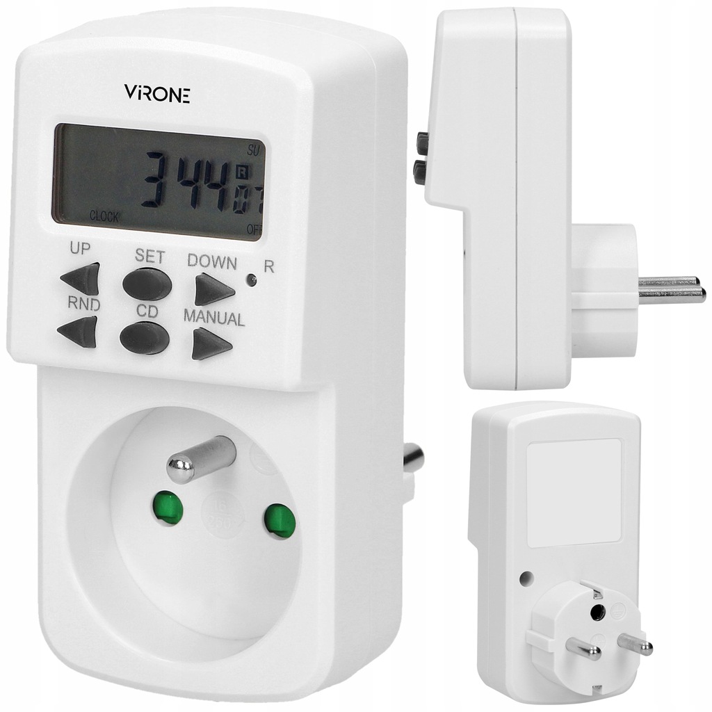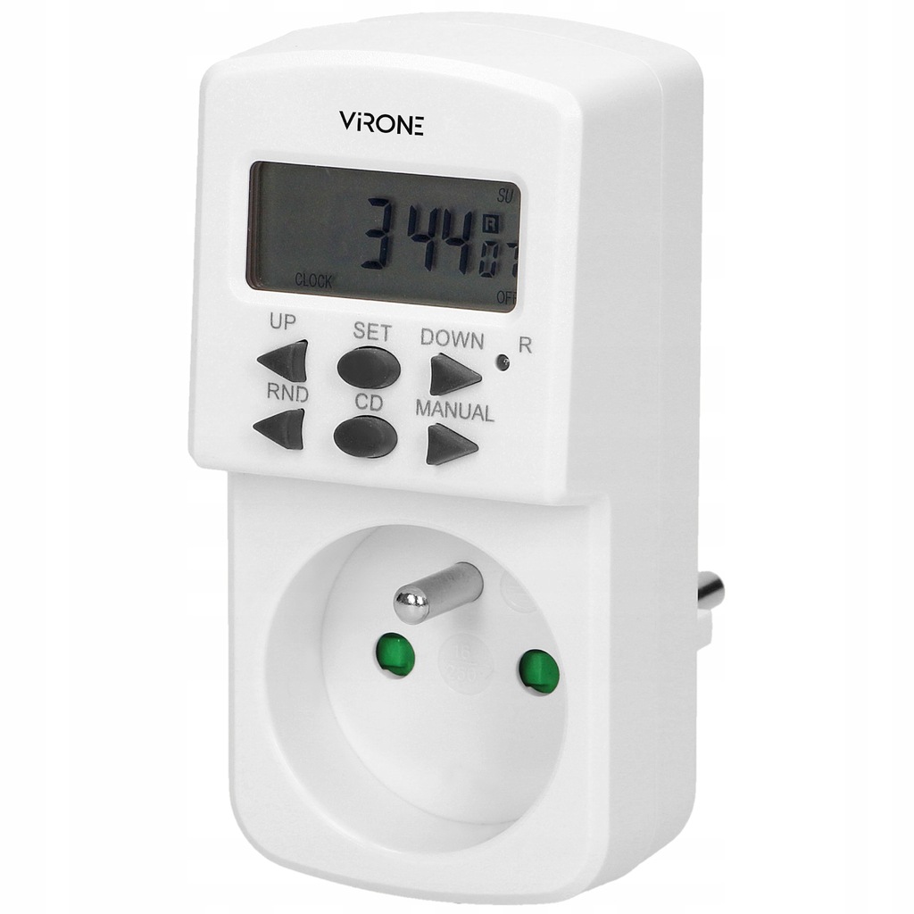 Programator z wyświetlaczem LCD do ustawiania czasu włączania i wyłączania urządzeń elektrycznych takich jak: oświetlenie, ogrzewacze wody, reklamy itp. Urządzenie posiada: 10 programów czasowych, 7 kombinacji dnia tygodnia, funkcja czasu letniego i zimowego, funkcja COUNT DOWN, tryb pracy 12 lub 24 godzinny. Wewnętrzny akumulator: NiMH 1,2V > 100h.
