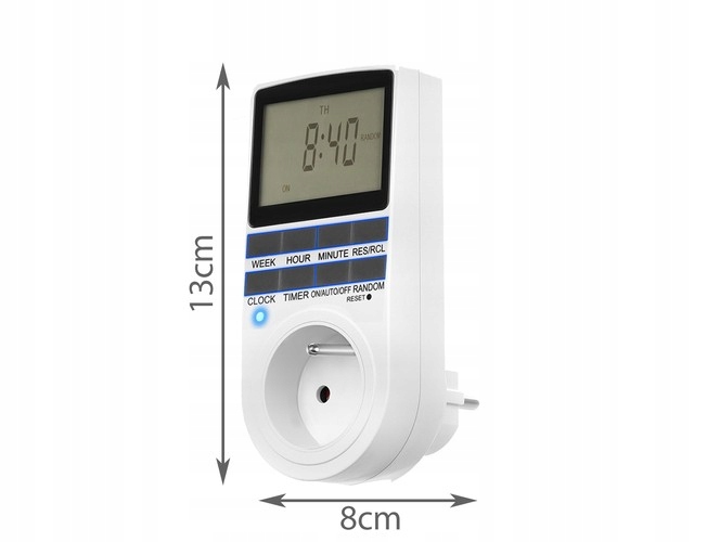 Programator czasowy to urządzenie, które będzie przydatne w każdym gospodarstwie domowym, biurze czy sklepie. Dzięki niemu możemy kontrolować dni, godziny, a nawet minuty działania urządzenia, które jest do niego podłączone. Posiada on 8 opisanych przycisków + RESET oraz czytelny wyświetlacz, na którym zobaczyć możemy aktualną godzinę, dzień i program.
