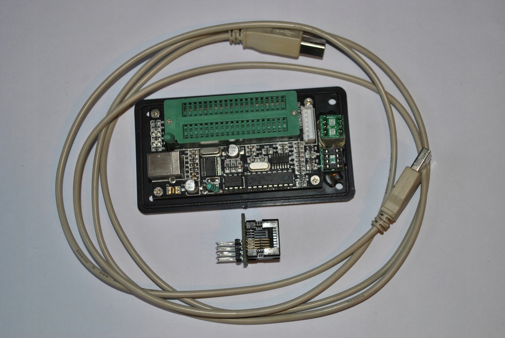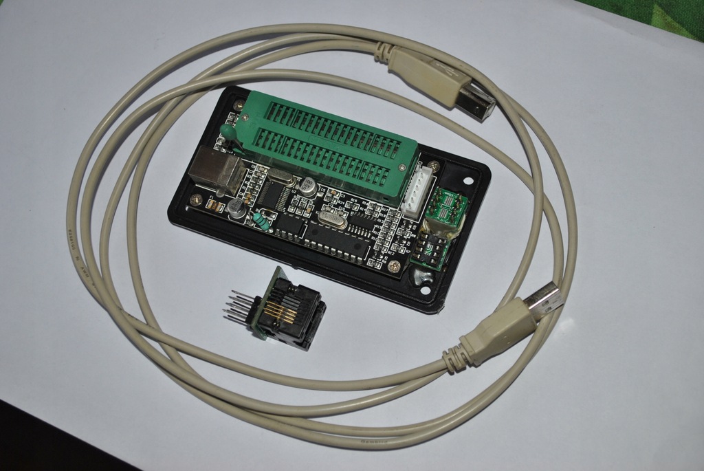 Sprzedam programator K150. Oparty na kontrolerze FTDI który jest znacznie szybszy i stabilniejszy niż popularne kontrolery prolific które zrywają połączenie i ogólnie są ciężkie w obsłudze. Ponadto ma dorobioną podstawkę DIP-8 oraz podstawkę na pinach sprężynujących pozwalającą na programowanie kości SOIC-8 SO-8 SOP-8 bez konieczności wylutowywania ich z płytek. Dołączam również podstawkę-adapter SOIC-8 SO-8 SOP-8 do samych układów wartą 18 zł gratis. W komplecie jest kabel USB. Ja używałem tego programatora do programowania chipów do konsol PSX i PsOne i spisywał się znakomicie. Zapraszam do zakupu.