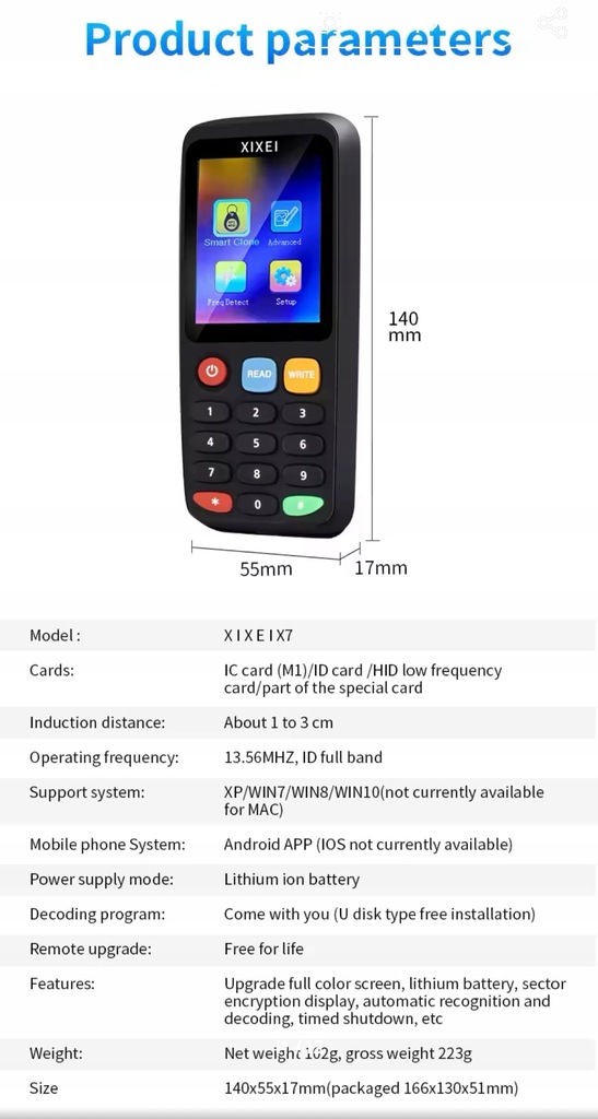 2. PEŁNA CZĘSTOTLIWOŚĆ: Obsługuje pełne pasmo częstotliwości ID IC, 13,56 MHz, 125 KHz, 175 KHz, 250 KHz, 300 KHz, 375 KHz, 500 KHz i inne częstotliwości.