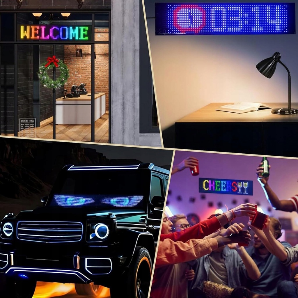 ✨✨ Inteligentne sterowanie aplikacją i majsterkowanie - Różnorodne funkcje aplikacji mogą zaspokoić różne potrzeby użytkowników. Elastyczny wyświetlacz LED jest sterowany za pomocą aplikacji połączonej z Bluetooth, kompatybilny z iOS i Android i obsługuje jednoczesne podłączenie wielu wyświetlaczy LED. Możesz samodzielnie tworzyć tekst (obsługa wielu języków), wzory i animacje zgodnie z własnym tekstem i scenami oraz dostosować jasność i prędkość do własnych potrzeb