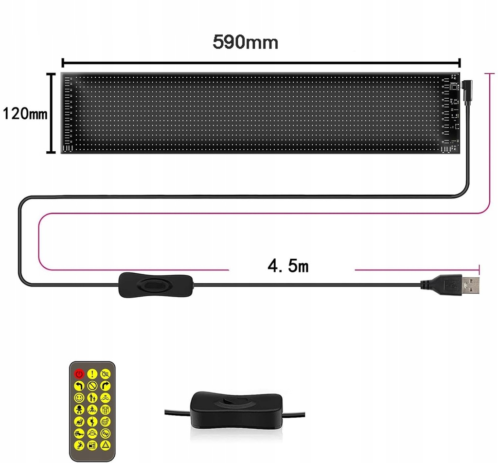 ✨✨ Elastyczny panel matrycy LED - panel matrycy LED składa się z wysokiej jakości elastycznej konstrukcji deski i można go dowolnie wyginać i składać. Tabliczka LED 5 V/2 A z kablem USB o długości 4,5 m do zasilania i taśmą klejącą do woli w samochodzie. Umożliwia bezpieczne użytkowanie na szybie samochodowej i tylnej szybie.