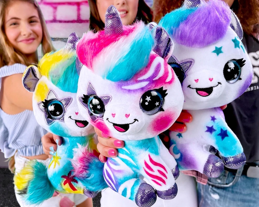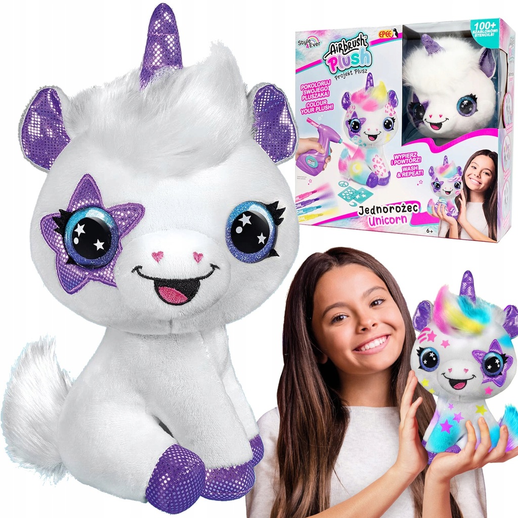 Wybierz wzór, kolor i pokoloruj jednorożca. Po krótkim czasie schnięcia Twój pupil będzie gotowy do zabawy! Specjalne markery na bazie kredy łatwo się zmywają, dzięki czemu możesz tworzyć zupełnie nowy styl pluszaka na okrągło.