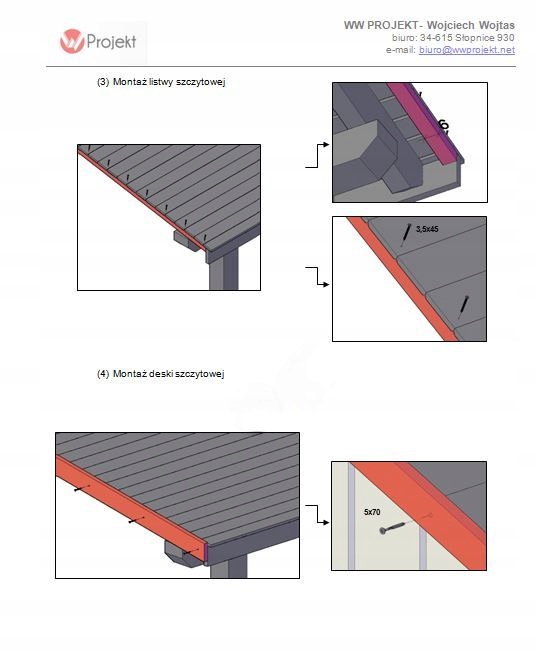 - Instrukcja montażu z ilustracjami wykonania szczegółów i detali konstrukcji