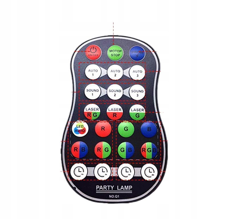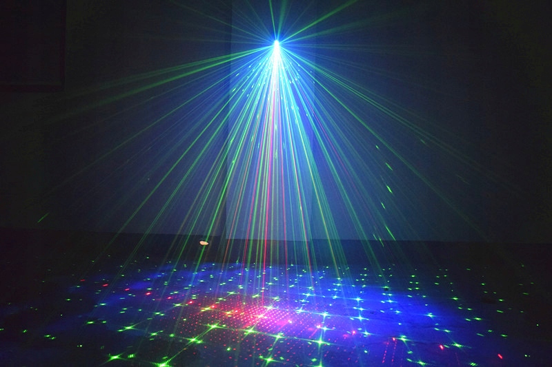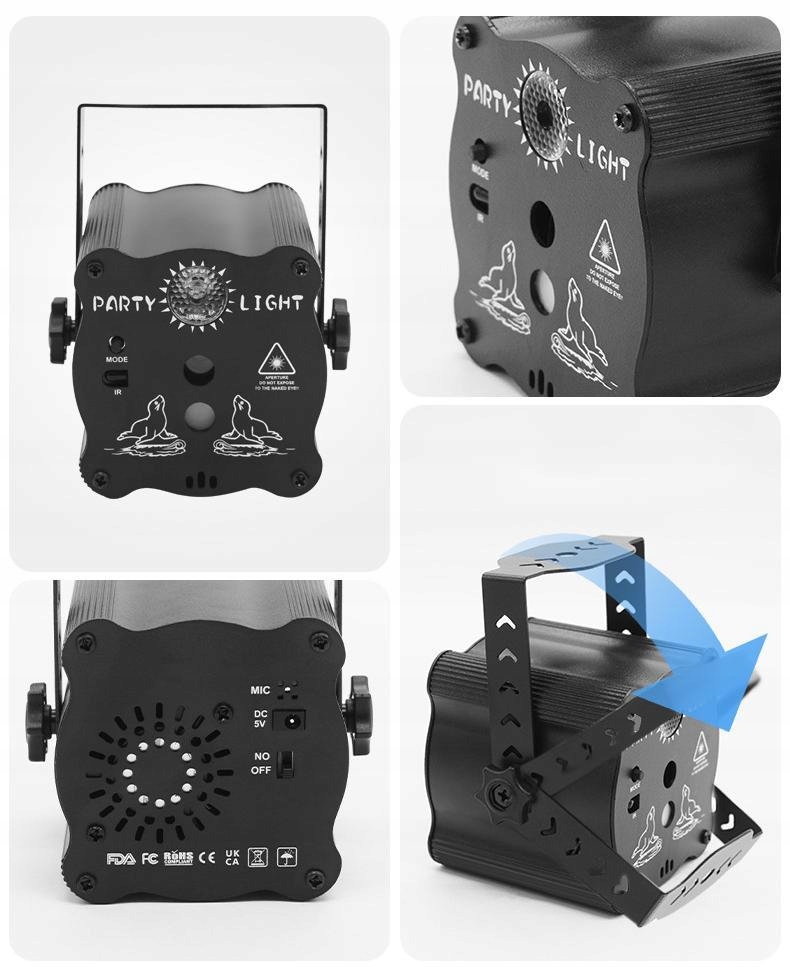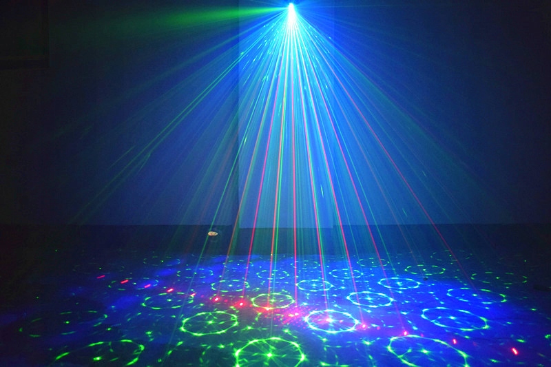 3 tryby laserowe, 8 trybów LED, 3 tryby stroboskopu do kontroli dźwięku, dziesiątki wzorów, które można dołączyć i uzyskać setki dodatków.