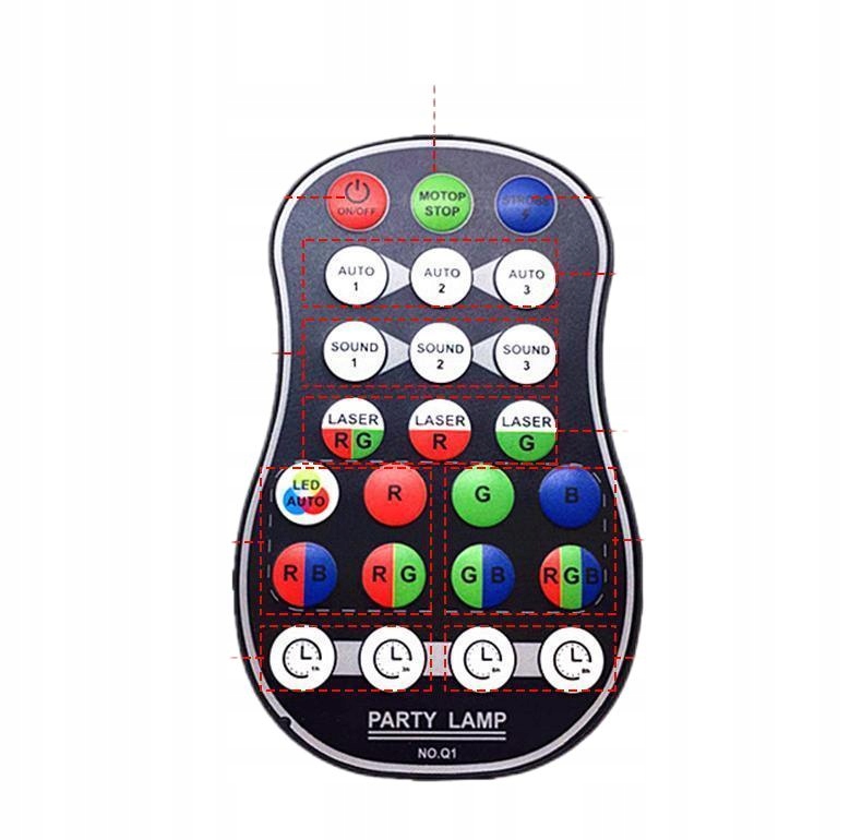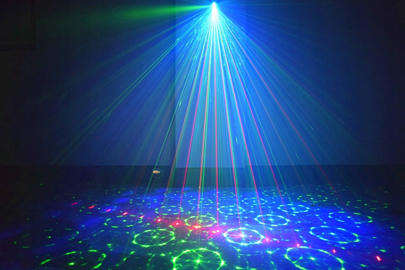 3 tryby laserowe, 8 trybów LED, 3 tryb stroboskopu do kontroli dźwięku, dziesiątki wzorów można dowolnie łączyć i można uzyskać setki kombinacji.