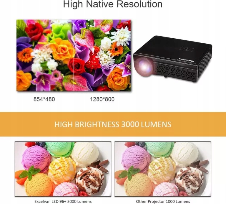 Zastosowanie --- Idealny do prywatnego kina o wysokiej rozdzielczości w domu, małych spotkań biurowych, szkoleń edukacyjnych, KTV, klubów nocnych, ponieważ wyświetla krystalicznie czysty obraz (nie zaleca się stosowania w dużych szkołach i spotkaniach).