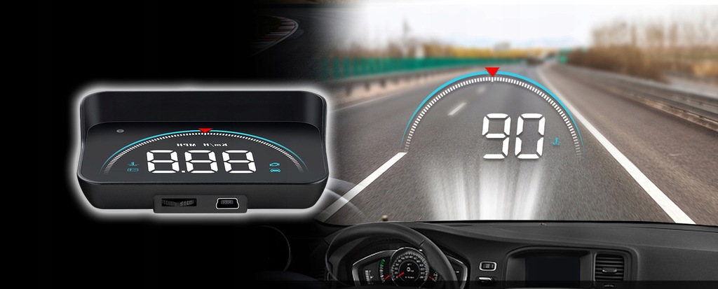 Wyświetlacz HUD przeznaczony do samochodów z złączem OBD2, kompatybilny z większością pojazdów posiadających to złącze. Urządzenie prezentuje dane dostarczane przez komputer pokładowy pojazdu.