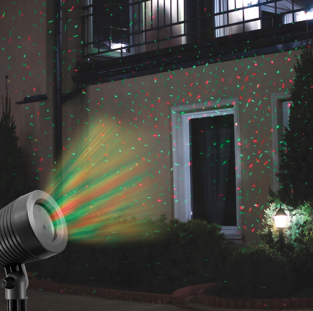 Projektor laserowy. Wiązki lasera w kolorze czerwonym i zielonym tworzą wyjątkowe iluminacje na elewacjach budynków, drzewach, w parkach i ogrodach.