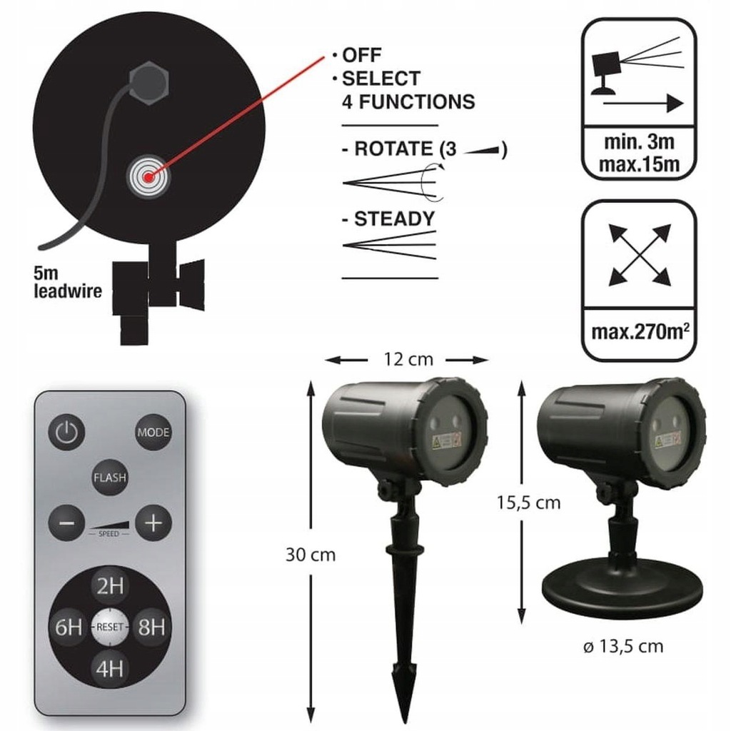 - PROJEKTOR RZUTNIK ŚWIĄTECZNY 12 WZORÓW LASER ZEWNĘTRZNY DEKORACJA Z PILOTEM
