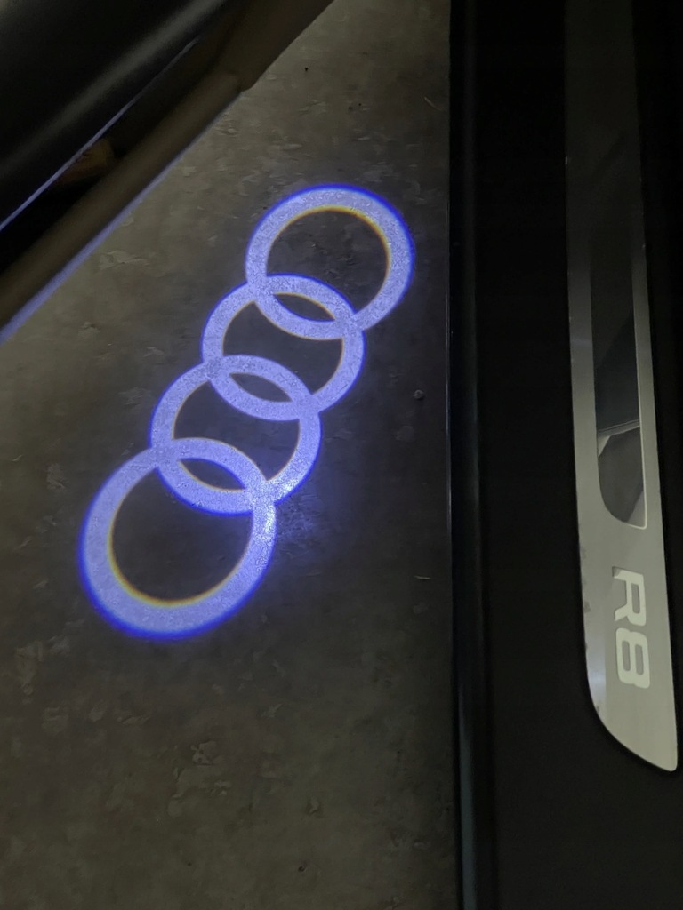 - Efektowne oświetlenie logo AUDI na powierzchni podłoża