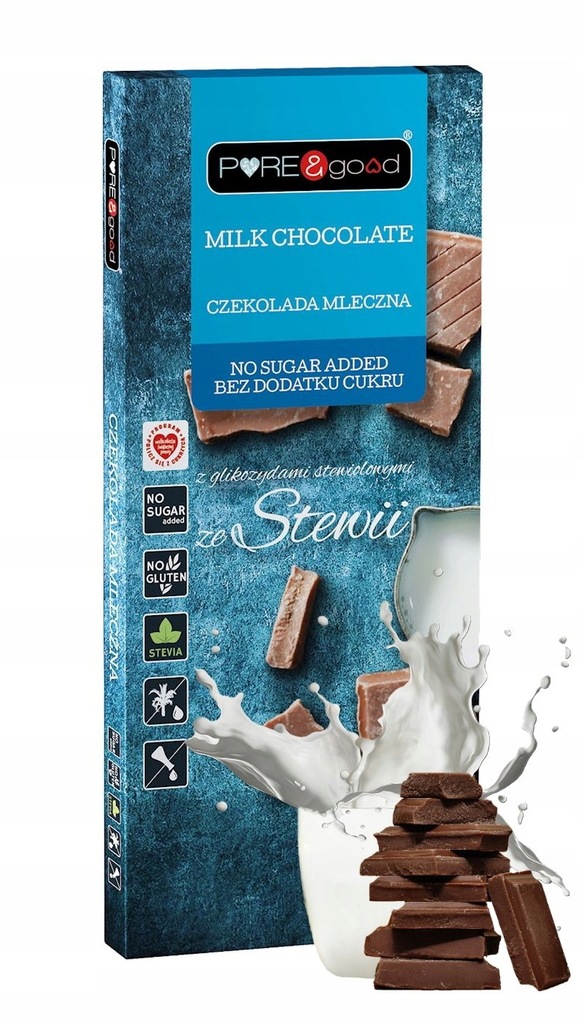 PROMOCJA CZEKOLADA MLECZNA ZE STEWIĄ BEZ DODATKU CUKRU BEZGLUTENOWA 100 g - PURE&GOOD -