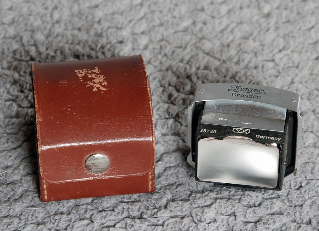 Witam, na sprzedaż oferuję pryzmat do aparatu Ihagee Exakta VX. Stan dobry - nie uszkodzony i nie zabrudzony (kilka minimalnych pyłków w środku zupełnie nie utrudniających pracy). Wizualnie nosi śladu użytkowania i posiada minimalne wgniecenie obudowy - zdj. nr 5. Szkło matówki bez uszkodzeń i nie wyszczerbione. W zestawie z oryginalnym skórzanym etui. Polecam.