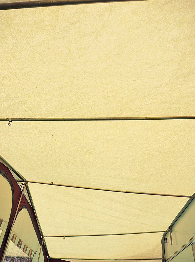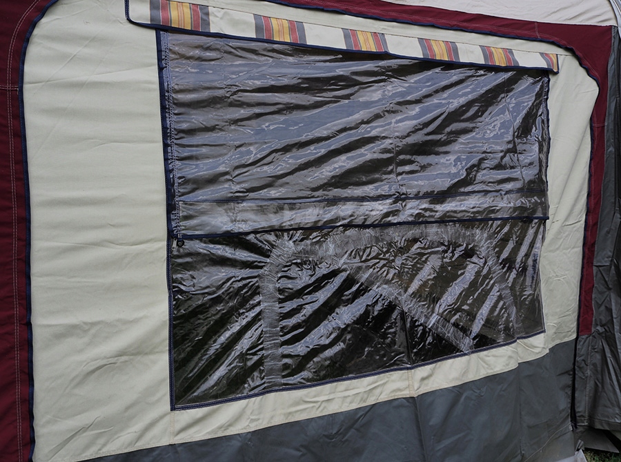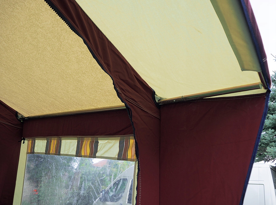 SOLIDNY PRZEDSIONEK W BARDZO DOBRYM STANIE Z KOMPLETNYM STALOWYM STELAŻEM, DWOMA DODATKOWYMI WZMOCNIENIAMI DACHU, DWOMA DODATKOWYMI NOGAMI, DODATKOWYMI RURKAMI POZWALAJĄCYMI NA OTWARCIE PRZODU I UTWORZENIE TZW. WERANDY, OSŁONĄ PRZECIWWIETRZNĄ NA DÓŁ PRZYCZEPY, OSŁONĄ NA KOŁO, LISTWĄ UMOŻLIWIAJĄCĄ POŁĄCZENIE OBU OSŁON, PODWÓJNYMI FARTUCHAMI.