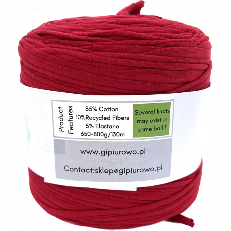 Przędza makaronowa, włóczka spaghetti - T-Shirt Yarn - czerwona - 130 m