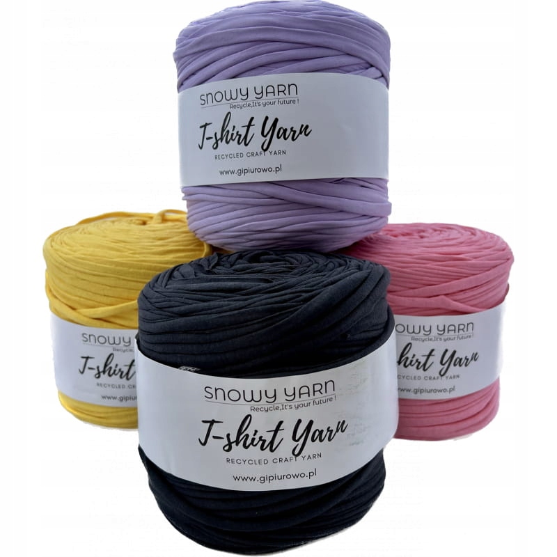 T-shirt Yarn to włóczka idealna do projektów dziewiarskich, szydełkowych i rękodzielniczych. Praca z przędzą T-shirt jest dość łatwa i szybka. Szydełkowe kosze, torby, dywaniki, maty, poduszki, pokrowce, pufy czy biżuteria to najpopularniejsze projekty jakie zrobisz z przędzy T-shirt.