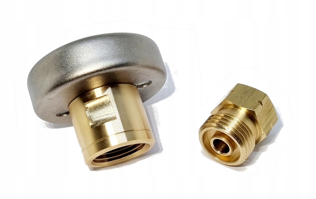 Końcówka składa się z dwóch części. Właściwej przejściówki i redukcji średnic. Gdy obie części są skręcone możemy napełnić małe turystyczne butle. Po wykręceniu redukcji duże butle 11 kg.