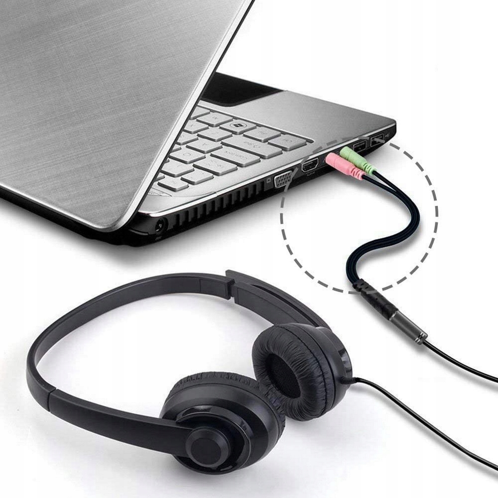 - Przejściówka umożliwia podłączenie m.in zestawu słuchawkowego (słuchawki stereo z mikrofonem) do komputera lub innego urządzenia, które posiada osobne wyjście słuchawkowe oraz wejście mikrofonu mini-jack