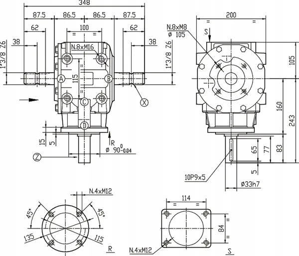- Przekładnia dostarczana bez oleju, olej musi być uzupełniony przed pierwszym uruchomieniem przekładni.
