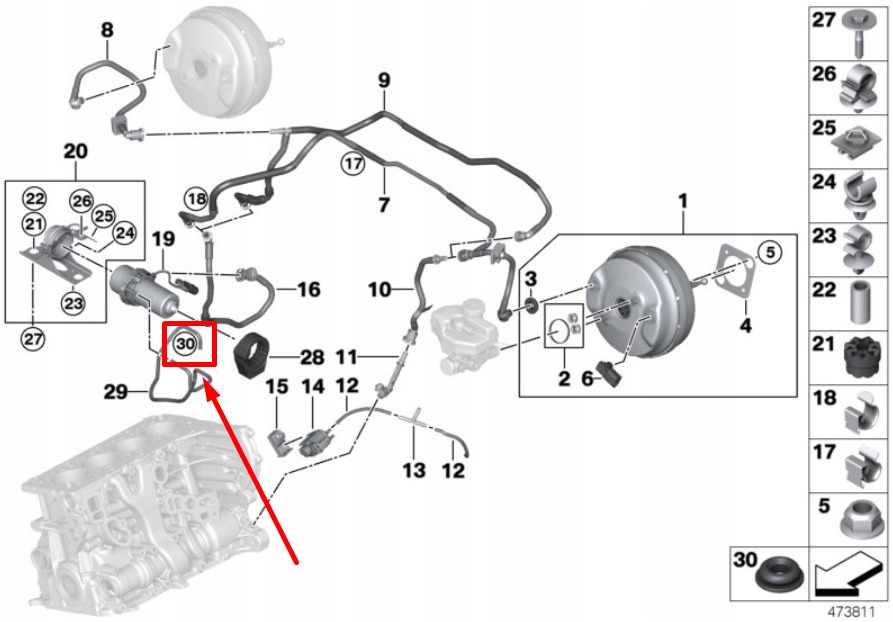 Przelotka gumowa BMW 5 G30 46631453144 1453144 OEM (16007638179)