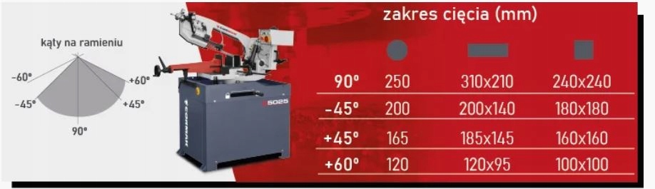 - Regulowane kąty cięcia – od –45° do +60° – idealna do rur, profili i wałków
