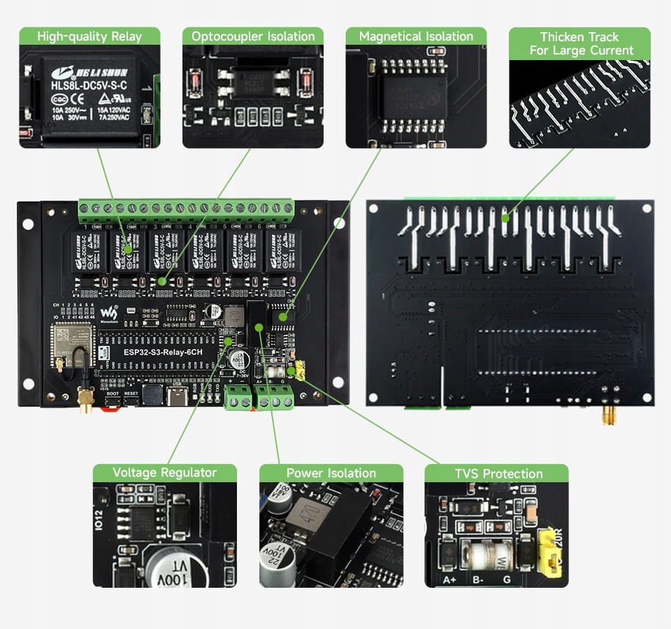 ✅Przemysłowy moduł przekaźnikowy WiFi 6-kanałowy ESP32-S3