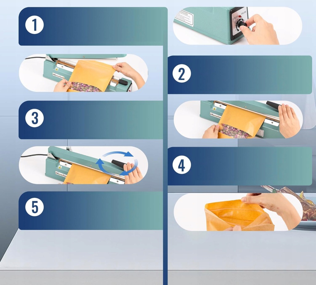 Urządzenie oferuje 9-stopniowe ustawienie czasu uszczelniania, co pozwala na dostosowanie pracy maszyny do grubości i rozmiaru worka. Użytkownicy mogą w łatwy sposób regulować czas uszczelniania, co pozwala na uzyskanie optymalnych wyników przy każdym typie materiału. Niezależnie od tego, czy pracujesz z cienkim plastikiem, czy z grubszymi materiałami, ta maszyna z pewnością sprosta Twoim wymaganiom i oczekiwaniom.