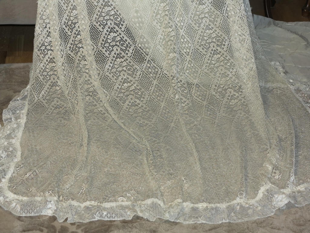 WIERZCHNIA KORONKOWA WARSTWA MA DODATKOWĄ WARSTWĘ PODSZEWKI, LUŻNO ZWISAJĄCĄ, NIE ZSZYTĄ Z WARSTWĄ KORONKOWĄ