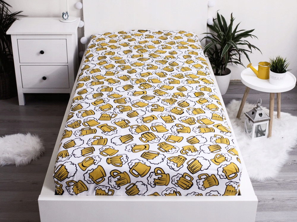 Udekoruj łóżko tym wysokiej jakości bawełnianym prześcieradłem. Miękka tkanina gwarantuje przyjemny i satysfakcjonujący sen. Prześcieradło z nadrukiem piwa beczkowego z pyszną białą pianką na wierzchu stanowi uzupełnienie pościeli z podobnym motywem. Prześcieradło o wymiarach 90 x 200 cm posiada w rogach wszytą gumkę, dzięki czemu z łatwością można je założyć na materac. Praktyczny i miły prezent zwłaszcza dla tych, którzy lubią piwo na każdą okazję.