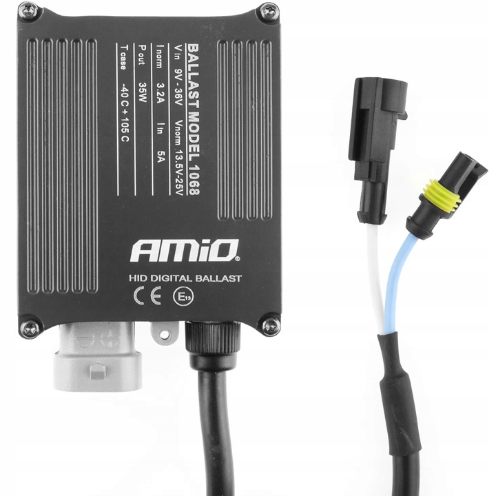 Wysokiej jakości profesjonalna cyfrowa przetwornica Xenon Ballast HID CAN-BUS 1068 marki AMiO w zestawie wraz z elementami montażowymi.