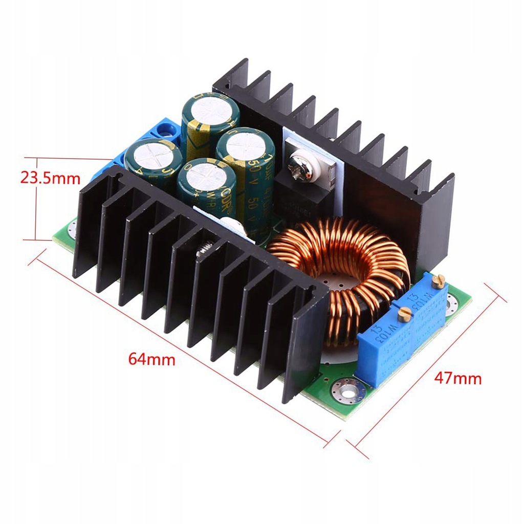 Przetwornica prądu stałego typu step-down, umożliwiająca płynną regulację napięcia i natężenia prądu w zakresie od 1.25V do 35V oraz od 1A do 8A. Osiąga wydajność 300W, co sprawia, że jest idealnym rozwiązaniem do projektów wymagających efektywnego zasilania.