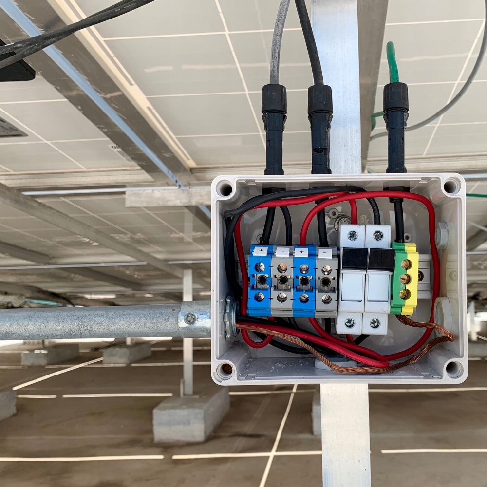 Czerwony kabel jest używany do dodatniego (+) połączenia między panelami słonecznymi.