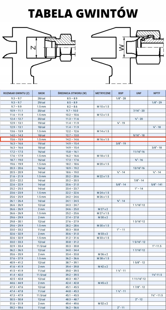 - CEL - wewnętrzny stożek z gwintem zewnętrznym 10L (M16x1.5) i sześciokątem pod klucz – 17 mm
