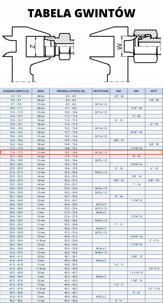 - Średnica Zewnętrzna: 17.4-18.1 mm
