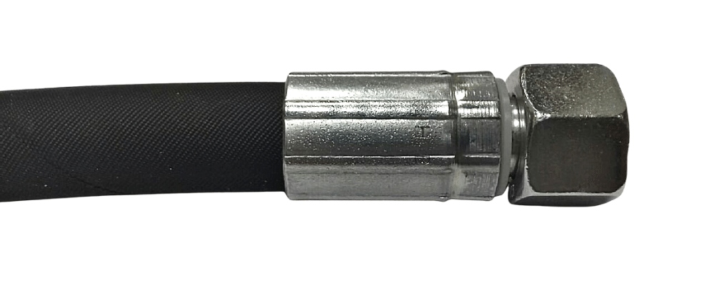 Zakuty Wąż Hydrauliczny 1SN AGRIFLEX z syntetycznej gumy, odporny na oleje, paliwa i warunki atmosferyczne. Gotowy do montażu.
