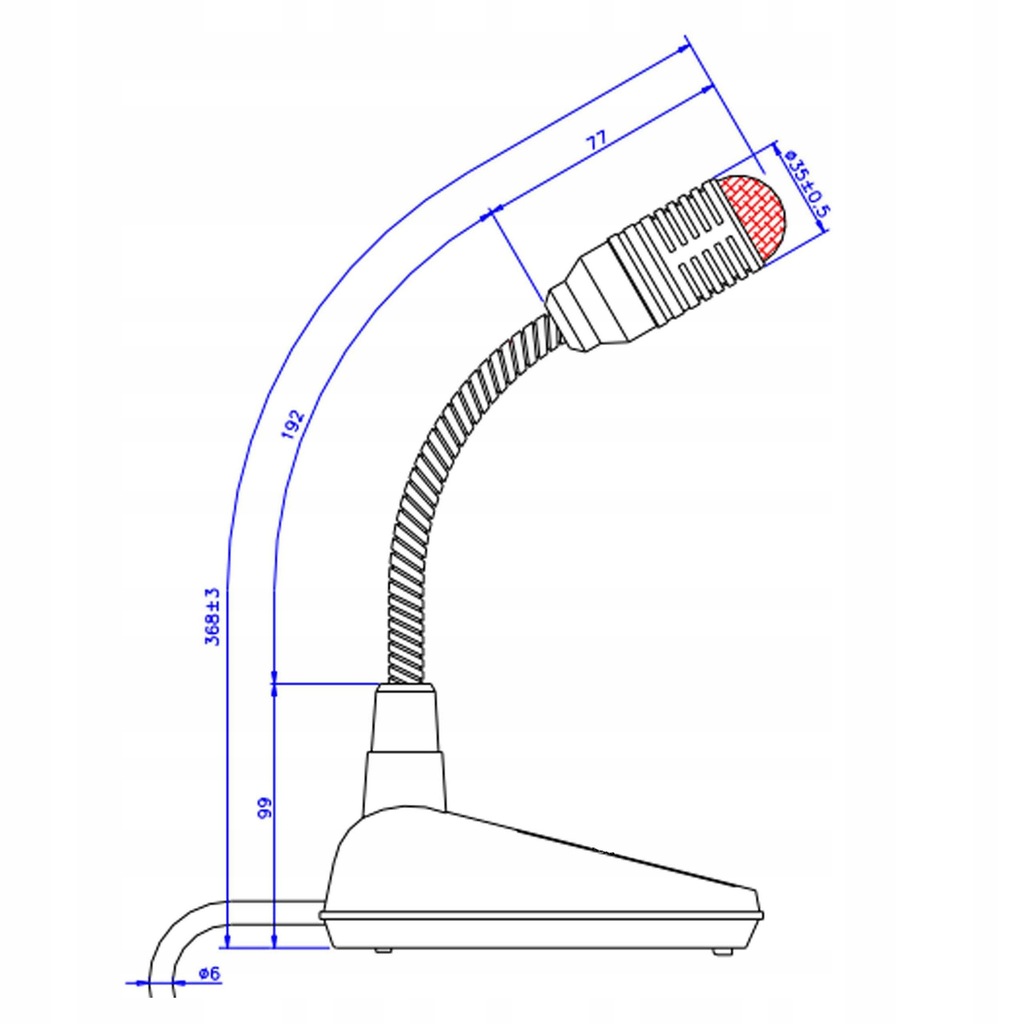Wyposażono go w bezgłośny przełącznik typu push-to-talk, elastyczną szyjkę o długości 31 cm oraz prawie 5-metrowy przewód zakończony wtykiem XLR.