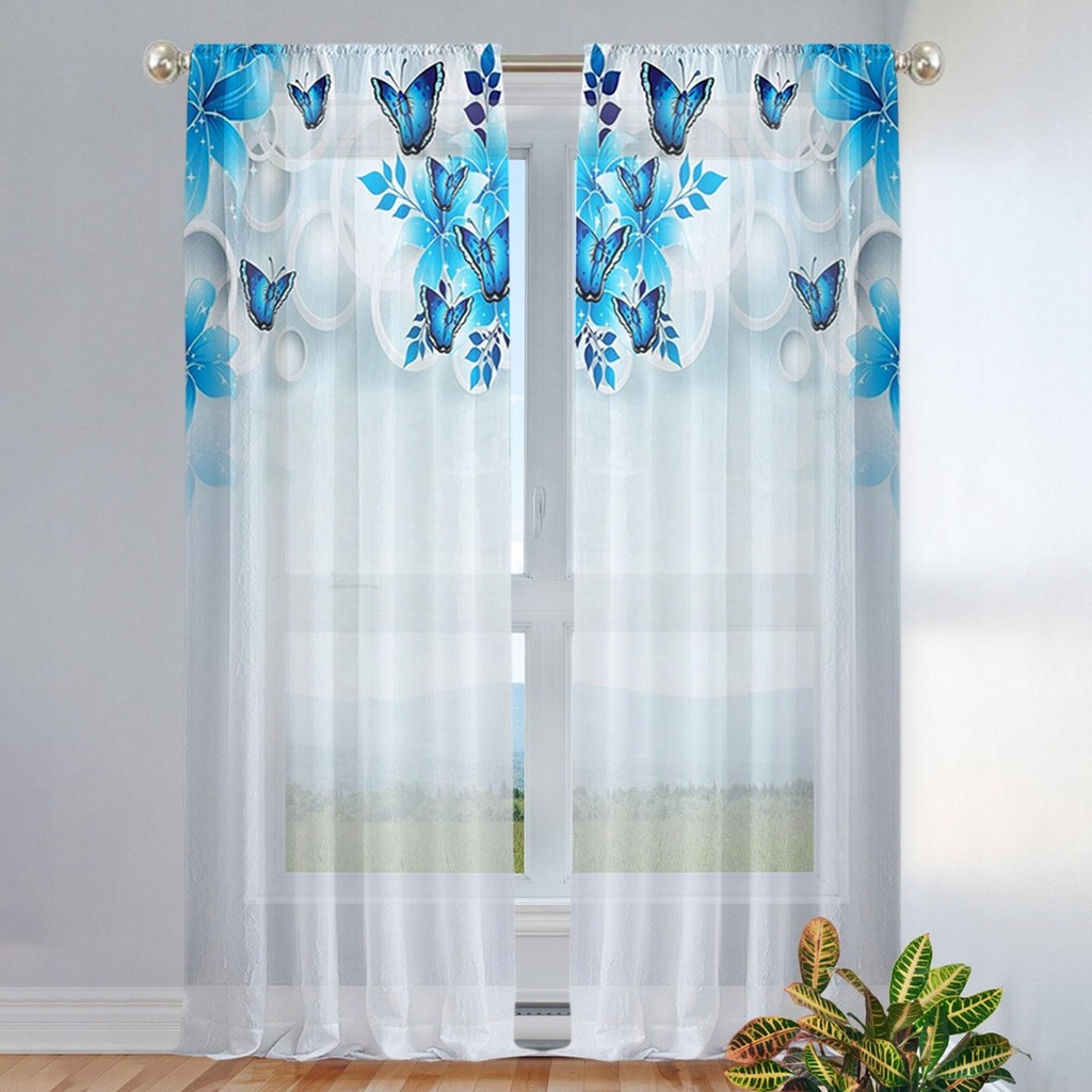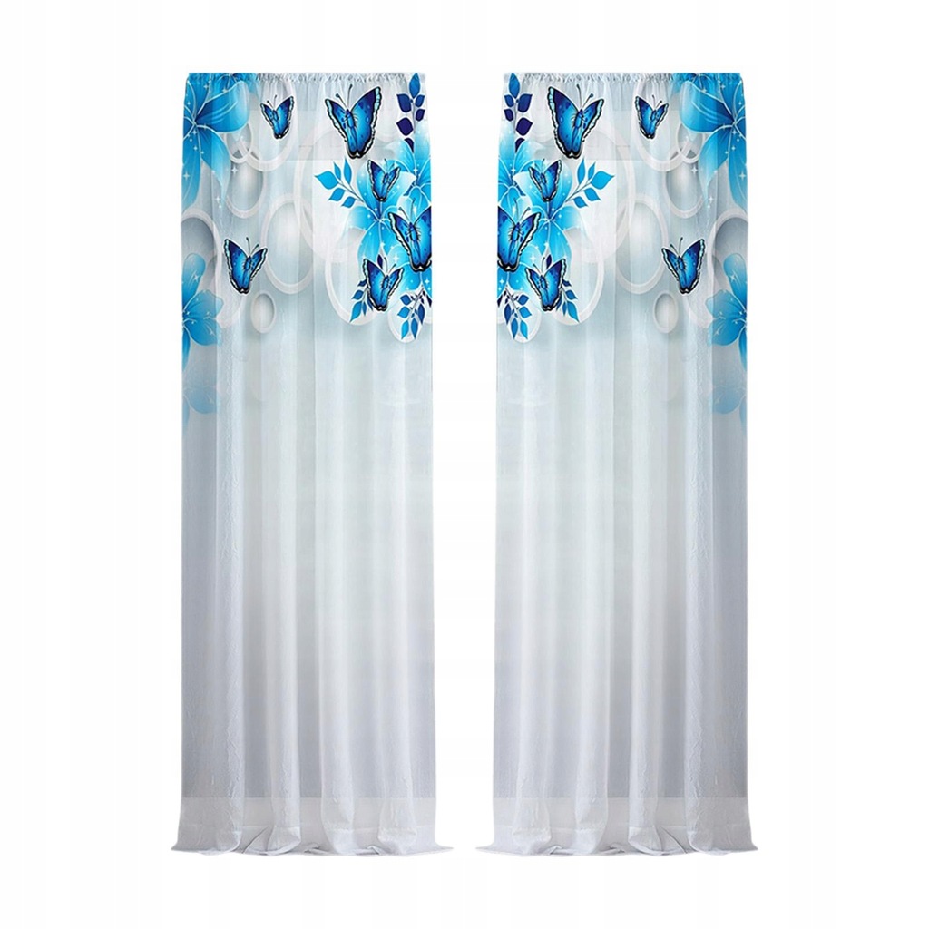 Zasłona z nadrukiem cyfrowym Blue Butterfly Dwa panele do dekoracji pokoju 132x160cm