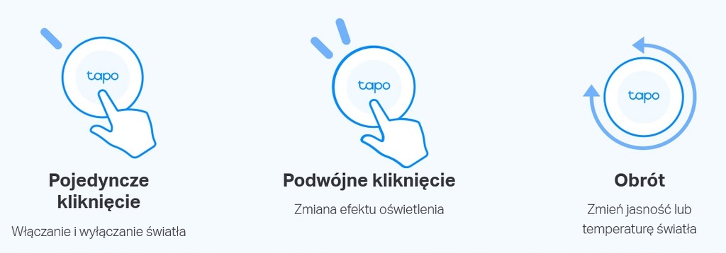 - Inteligentne działania – Steruj wieloma światłami, elektroniką i innymi urządzeniami Tapo Smart za pomocą przycisku.