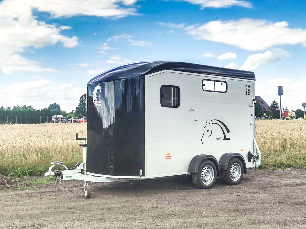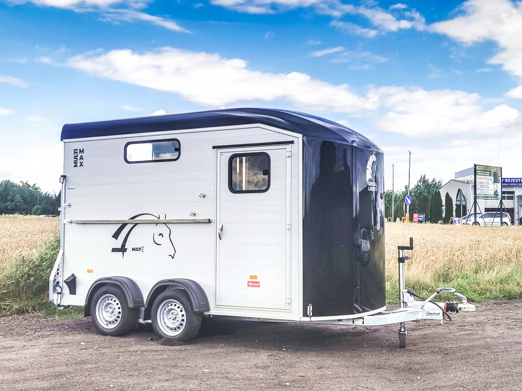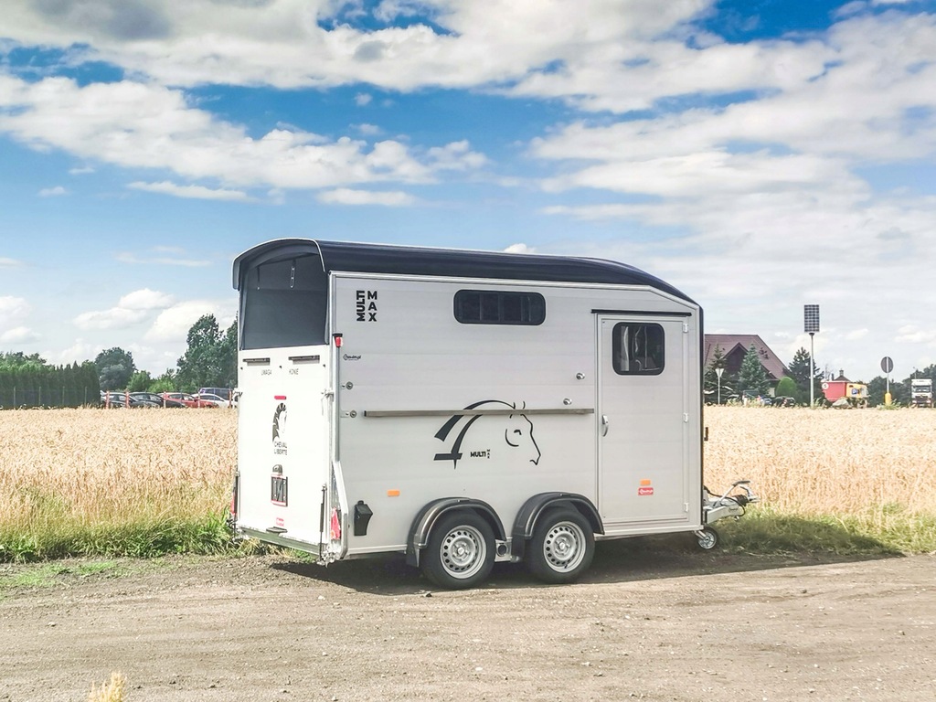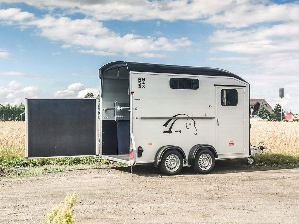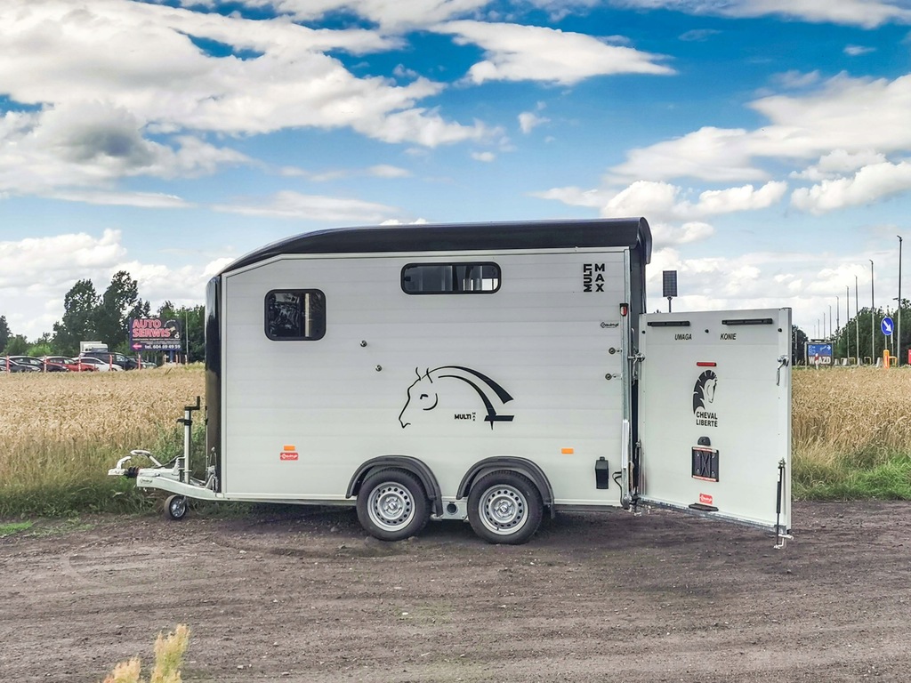 Najnowszy model przyczepy do przewozu koni - MULTIMAX! Model łudząco podobny do MAXI 2. Jednak są różnice między nimi. MULTIMAX to przyczepa stworzona specjalnie z myślą o jeźdźcach i ich wierzchowcach. Posiada bardzo funkcjonalną przegrodę z przodu przyczepy, która z łatwością pomieści nie tylko siodła i inne akcesoria jeździeckie, ale również paki jeździeckie na kółkach, siano.