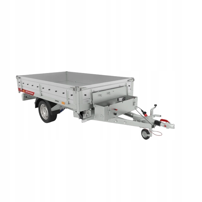 Przyczepa do transportu różnych materiałów wyposażona w system wywrotu.Pompa elektryczna i wytrzymała konstrukcja spawana. Możliwość otworzenia i zdemontowania wszystkich burt.